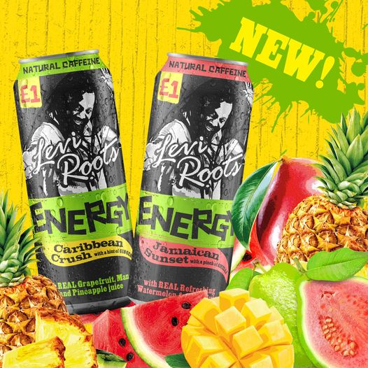 Levi Roots has expanded into the energy drink market with two new flavors: “Caribbean Crush with a hint of ginger” and “Jamaican Sunset with a pinch of chilli”